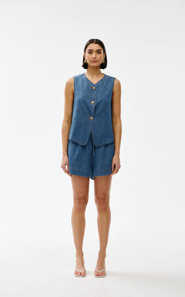 KinneyA modern staple with a classic vintage shape, the Camille Vest in Denim offers refined structure with relaxed flair.