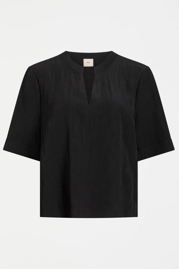ELKThe Kysten Top is a classic, understated, day-to-evening top with thoughtful touches. Crafted from a speciality silky soft, crinkle-effect responsibly sourced viscose blend, this top has a round collar and flattering v-neckline with centre front seam to elongate and flatter. Finished with cuffed wide sleeves and mini side splits. Pair this slightly cropped design with your favourite denim or our tailored pants for day, or with our Hullu Pant and a statement earring for evening