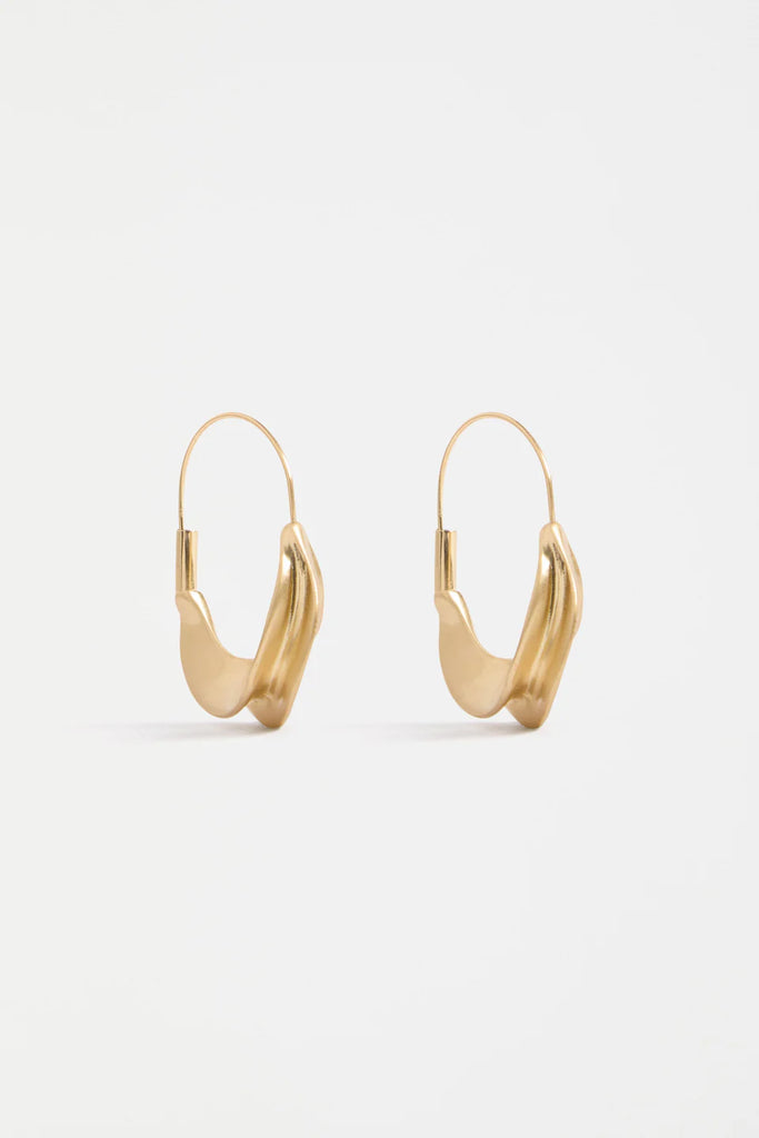 ELKThe Siita Hoop Earring is fresh, sculptural take on the classic hoop earring. Featuring a textured petal-like shape at the base of the hoop and fine hoop closure. These sleek earrings will add refined edge to your weekend and evening outfits
