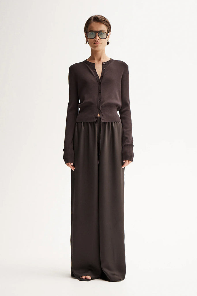 Elka CollectiveMade of a luxuriously soft, double-faced recycled Japanese satin, the Mina Pant is an elevated casual piece for low maintenance outfitting. Cut to a mid-rise with an elastic, adjustable waistband, these pants have a full length wide leg silhouette. Style with seasonal knitwear and basics for weekend comfort or opt for a coordinated look with the Ella Shirt.