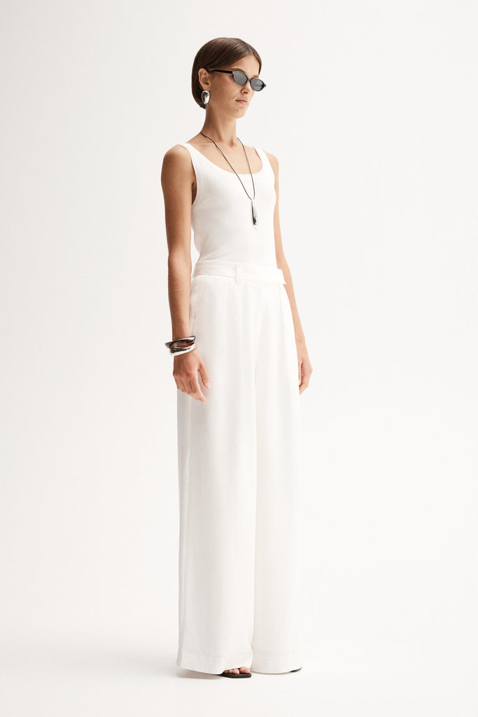Elka CollectiveMade of a luxuriously soft, double-faced recycled Japanese satin, the Mina Pant is an elevated casual piece for low maintenance outfitting. Cut to a mid-rise with an elastic, adjustable waistband, these pants have a full length wide leg silhouette. Style with seasonal knitwear and basics for weekend comfort or opt for a coordinated look with the Ella Shirt.