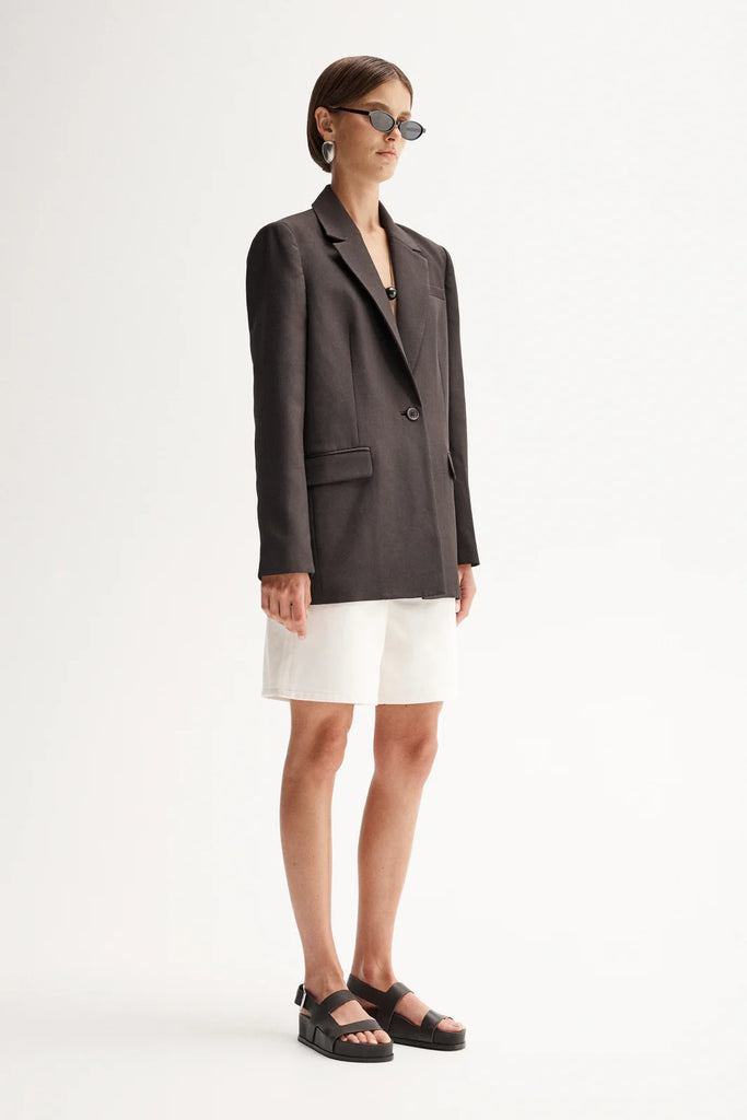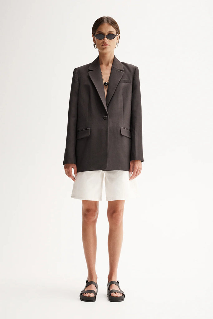 Elka CollectiveDesigned for lightweight layering through the seasons, the Pharoah Blazer is made of a soft fabric blend with a single breasted front, button closure, centre dart seams, and functional front pockets. True to size with a relaxed, slightly oversized fit, this blazer pairs effortlessly with structured denim and seasonal knitwear for a low effort day to night outfit. Paired with the matching Pharoah Short and Pharoah Skirt, this blazer also offers a sleek, refined option for your 9-5.