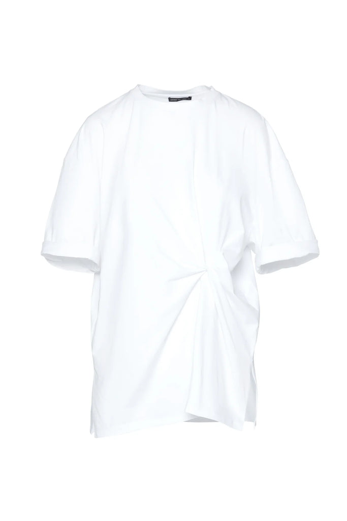 - Knot detail at wearers left hand side low waist.