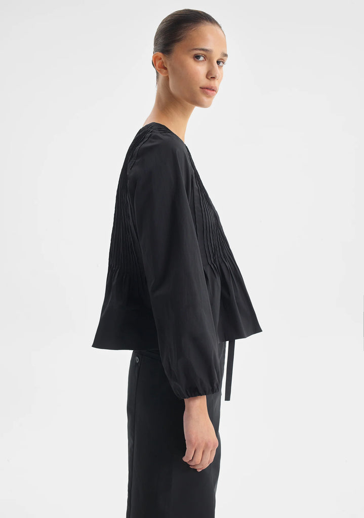 MorrisonCrafted from mid-weight cotton poplin, the Arabella Top features a round neckline with a keyhole and button closure at the back. Pintuck detailing throughout the bodice adds subtle texture, while the full-length sleeves with elasticised cuffs and flared hem create a beautiful silhouette.