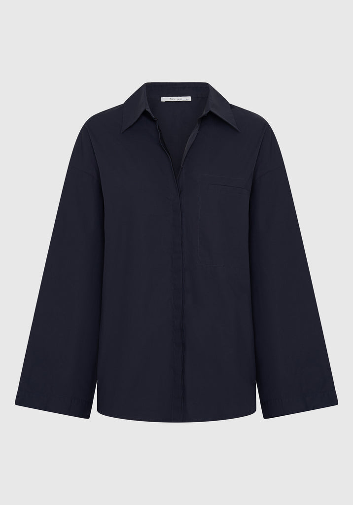 MorrisonMade from premium cotton poplin, the Fillip Shirt showcases a relaxed fit with refined details. It features a traditional collar, concealed button placket, dropped shoulders, and full length wide sleeves with extended button cuffs. A single welt chest pocket and side hem splits complete this effortlessly modern silhouette.