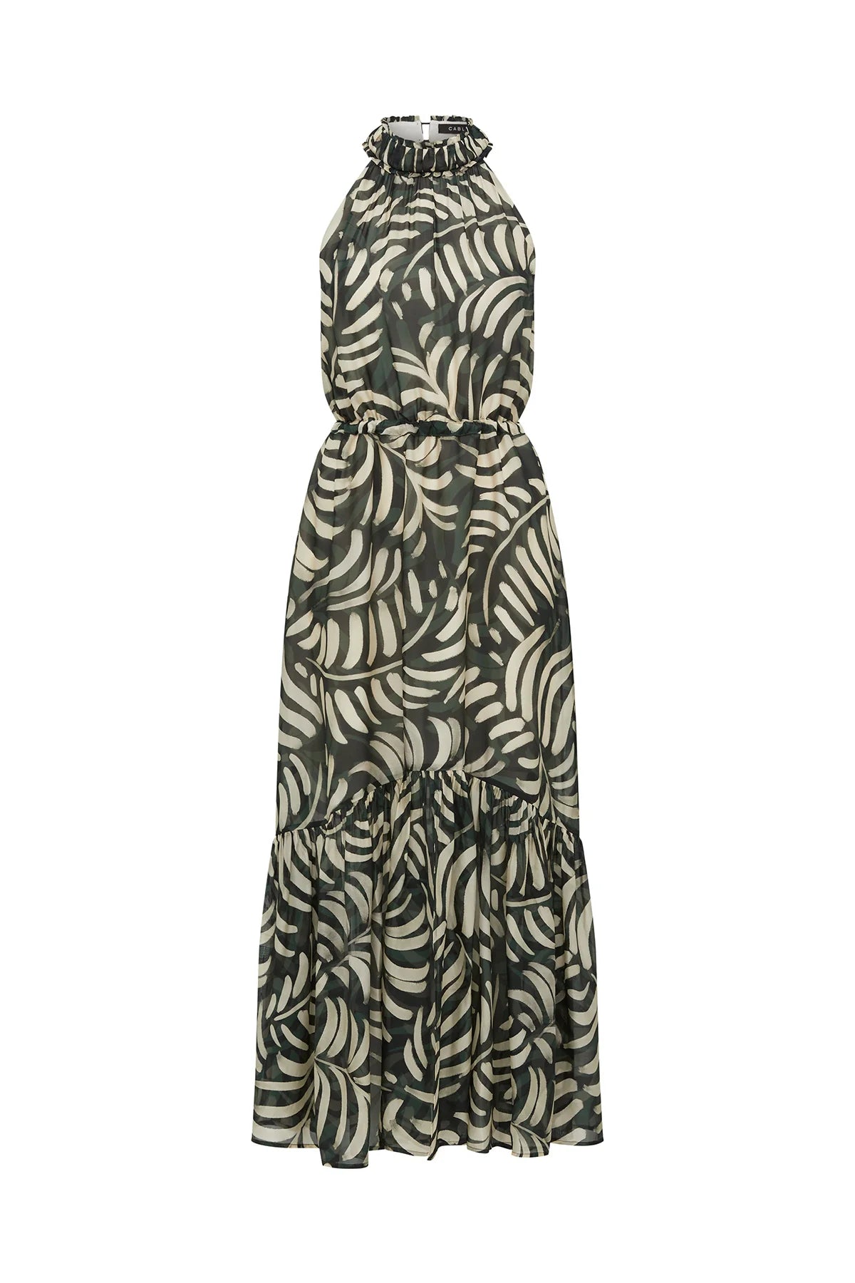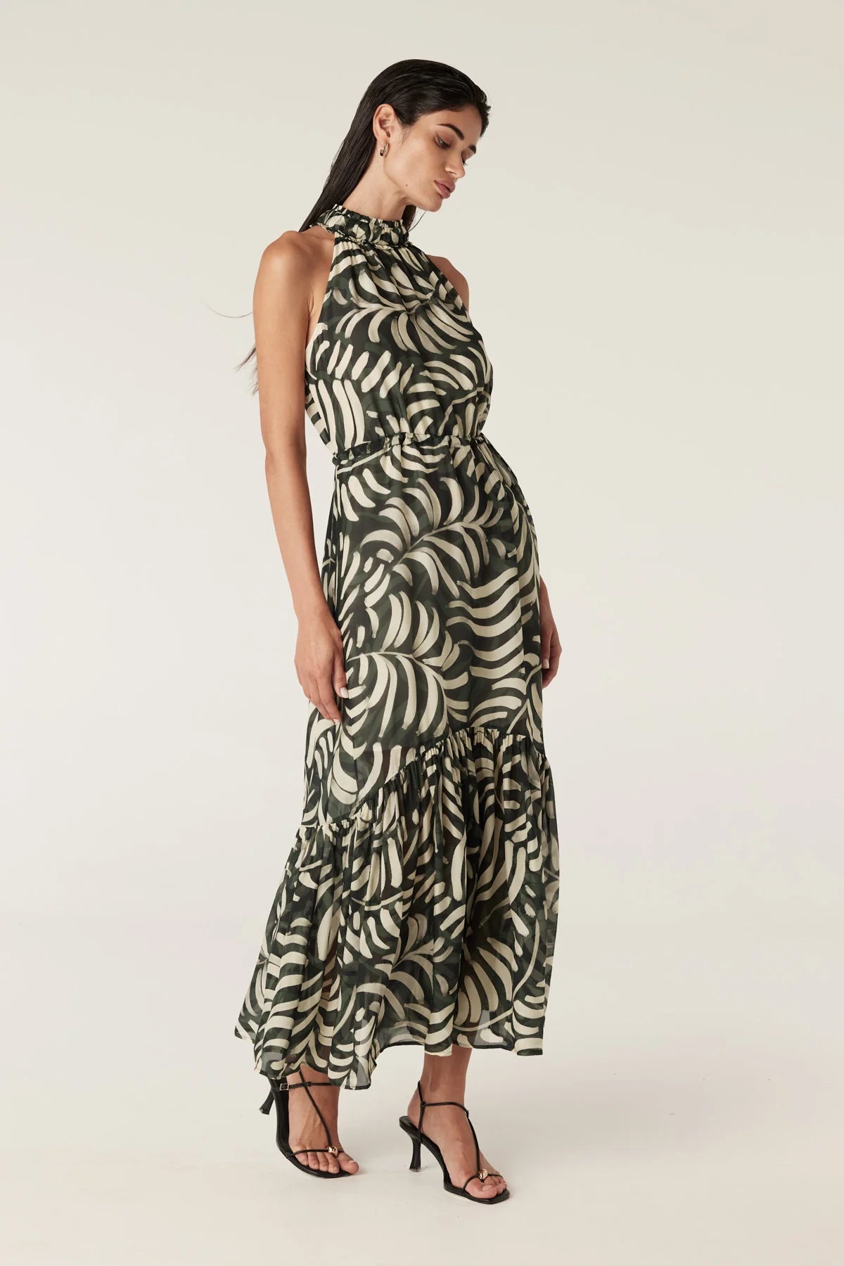 The Eden Halter Neck Dress is made from a lightweight silk blend chiffon in an exclusive print. It features a halter neck with a back button closure, a drawstring waist and a hem frill with a front split. Fully lined, this dress brings ease and fluidity to occasion dressing.