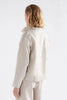 ElkThe Hofer Jacket is an unlined linen jacket with a funnel neck and a dropped shoulder. There are concealed metal snap studs down the front of the jacket.