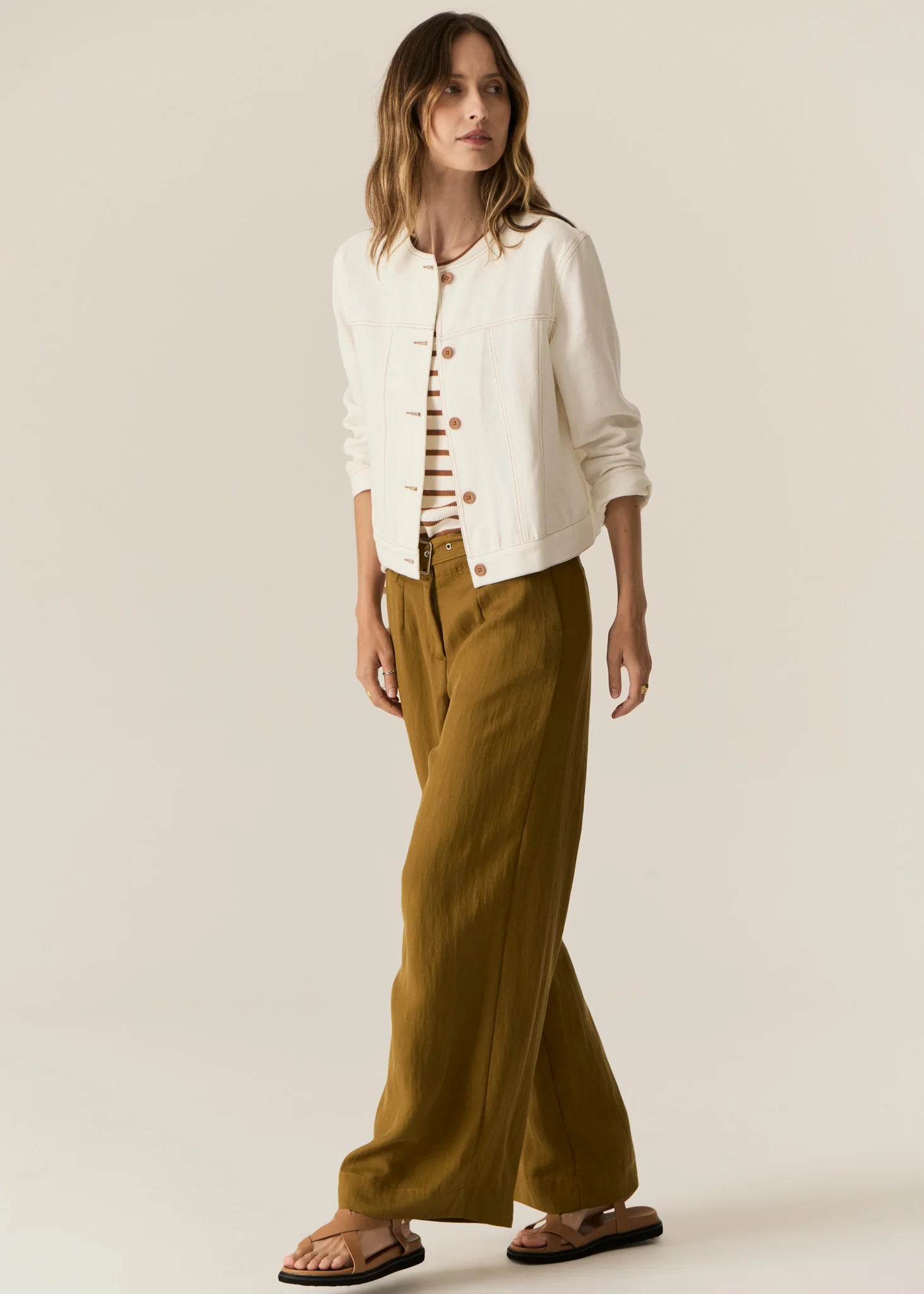 The Carsen Denim Jacket is an elevated take on a classic denim jacket. With refined topstitch detailing and a collarless design, we think this just may be the perfect layering piece for Spring.