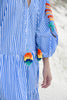 • Notched neckline with multicoloured fringe tie