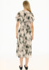 -Shirred panels at the front and back of the waist create a softly cinched silhouette.