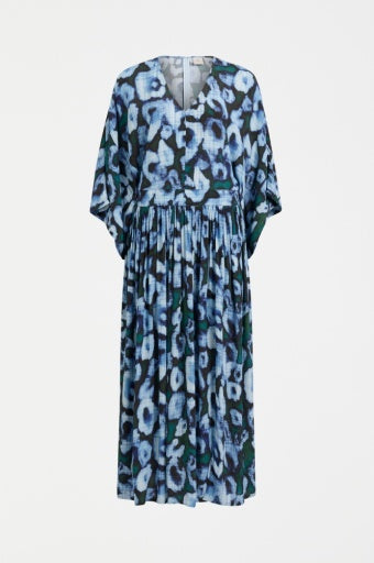 ElkThe Ople Dress is an A-line maxi dress showcasing the striking, fresh Ellora Print. Crafted from a breathable LENZING ECOVERO™ viscose blend with a subtly textured feel with a matte finish, this dress features a V-neckline and three-quarter wide batwing sleeves. A regular fit through the bust that transitions into a defined gathered waist and flowing into a full A-line hem with a high front split. Made for long summer days that turn into warm nights out.
