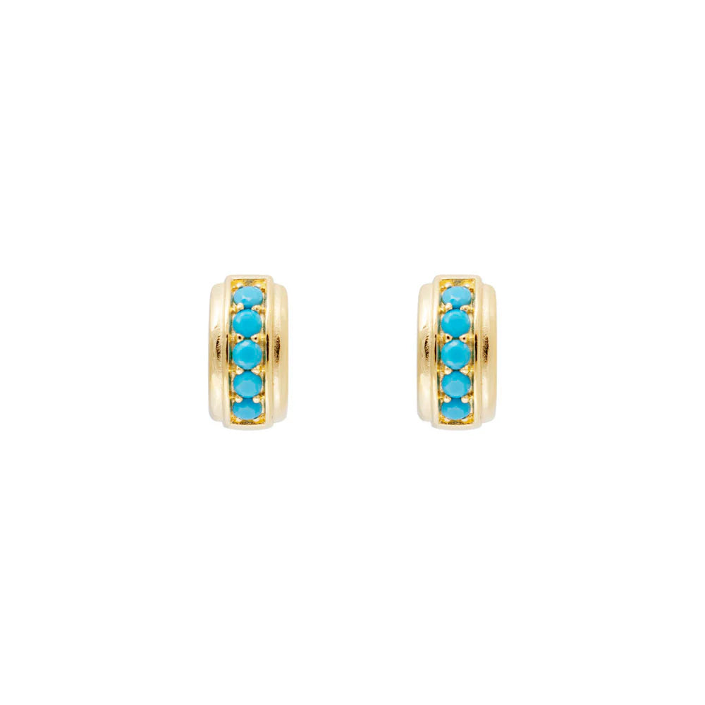 Dive into a splash of vibrant colour with the Blue Grotto Orb Huggies. These lightweight, elegantly crafted earrings feature a row of turquoise coloured crystals inspired by the depths of a hidden grotto. Perfect for adding a subtle yet eye-catching pop to any outfit, their secure huggie design ensures comfortable wear all day long.
