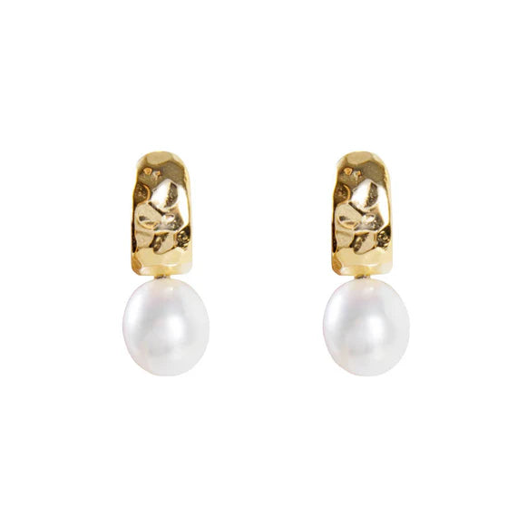 Elevate your everyday elegance with the FAIRLEY Pearl Beaten Dolce Hoops in Gold. Crafted from sterling silver and plated in luxurious 18k gold, these hoops feature a distinctive beaten texture that adds artisanal charm and contemporary flair. Each hoop is adorned with a lustrous freshwater pearl, bringing a touch of natural sophistication and timeless beauty.