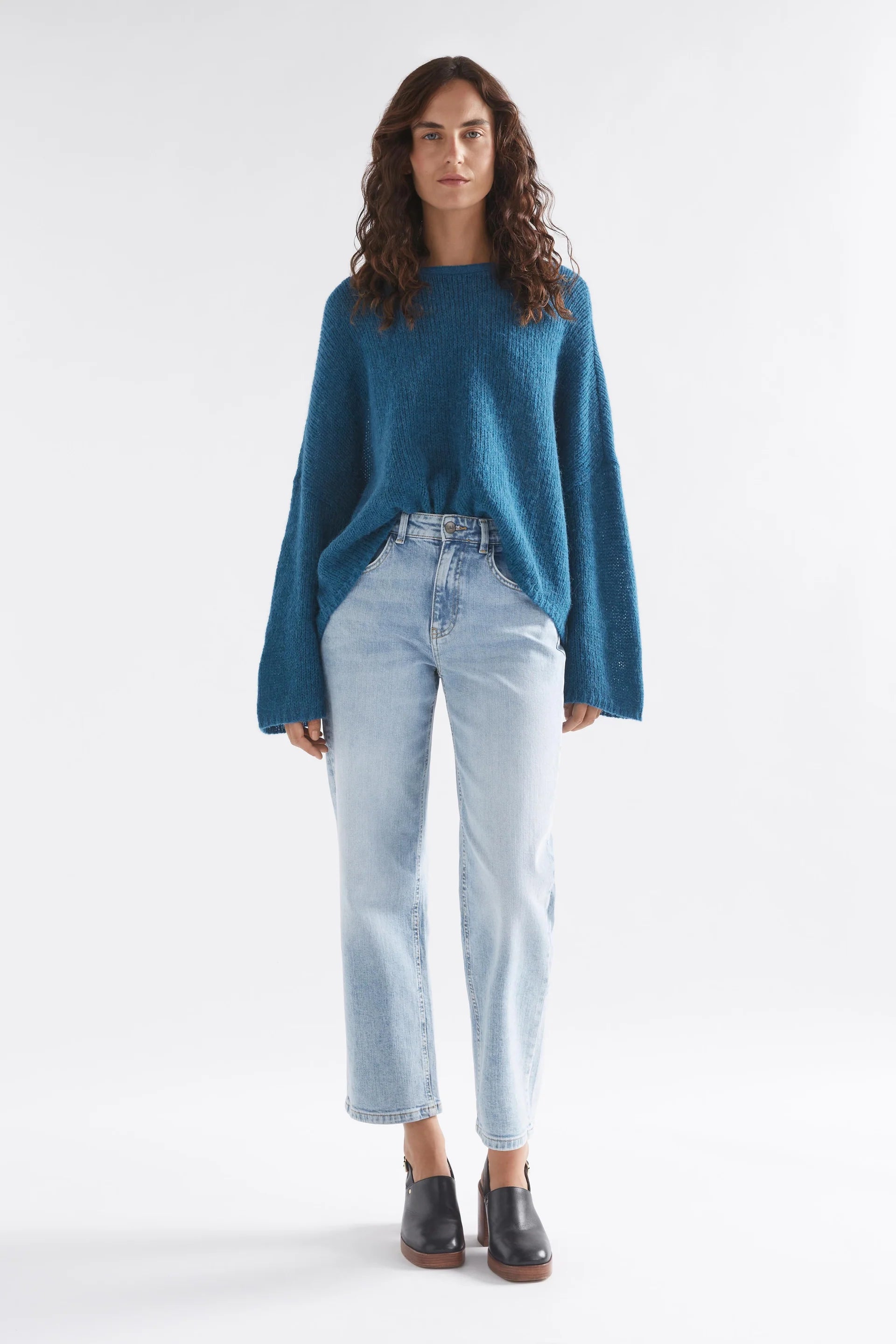 The Agna Sweater is a classic, best selling ELK style and a firm favourite of our team and customers. Appreciated for its laid back aesthetic and year-round wearability, this relaxed-oversized, boxy fit sweater features an exaggerated dropped shoulder and a fluted wide sleeve. Draping casually across the body, this sweater is crafted from a soft, comfortable alpaca-wool blend yarn.