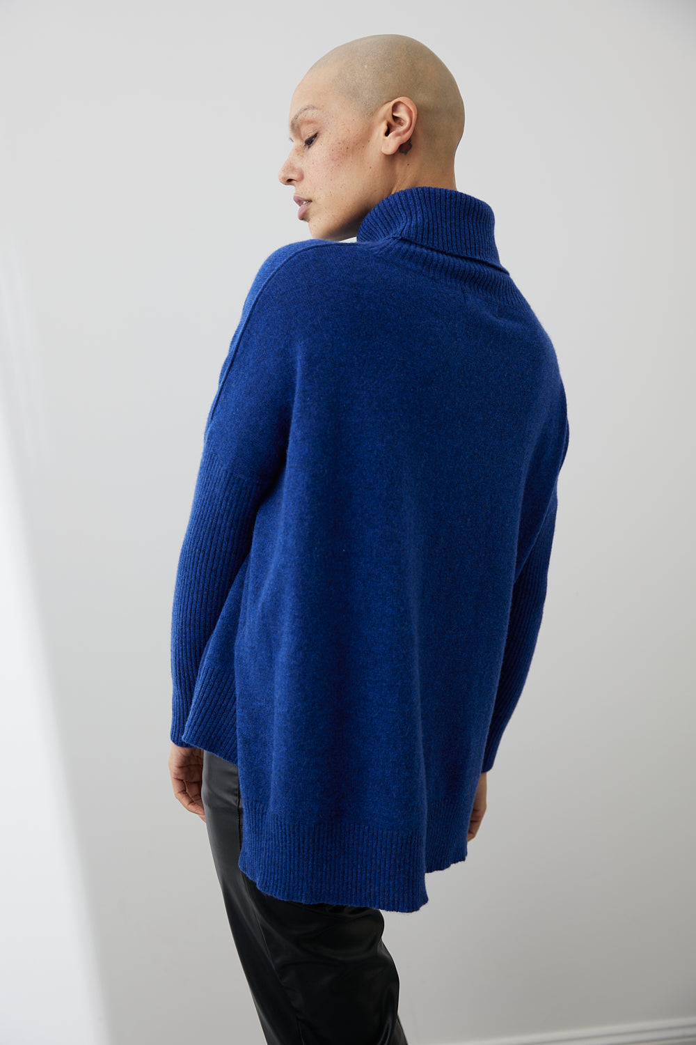 This timeless rollneck knit is made from 100% Mongolian Cashmere. Featuring a flattering rib detail across the hemline and sleeves. The stepped back and side splits creates a relaxed drape to maximise comfort. This classic style looks great over jeans and is a winter wardrobe staple.