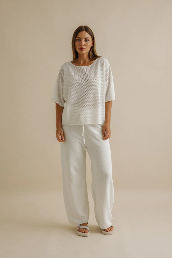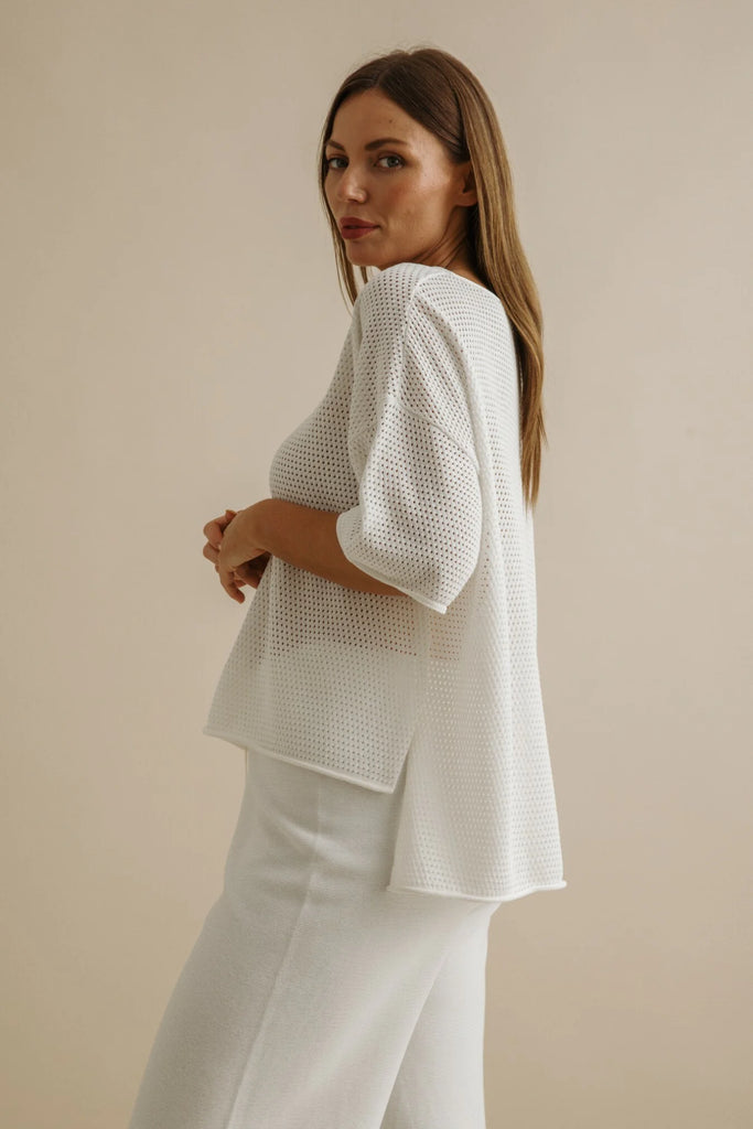 TalamayaLight and airy with a quiet sophistication, The Nautilus high-twist cotton pullover is designed for effortless elegance. Its pointelle knit creates a delicate pattern of subtle perforations, offering breathability and texture while maintaining a soft, structured drape. The intricate openwork adds depth and visual interest, making it equally suited for layering or wearing on its own. Refined yet relaxed, this pullover transitions seamlessly from casual moments to more polished occasions—a timeless piece that feels as effortless as it looks.