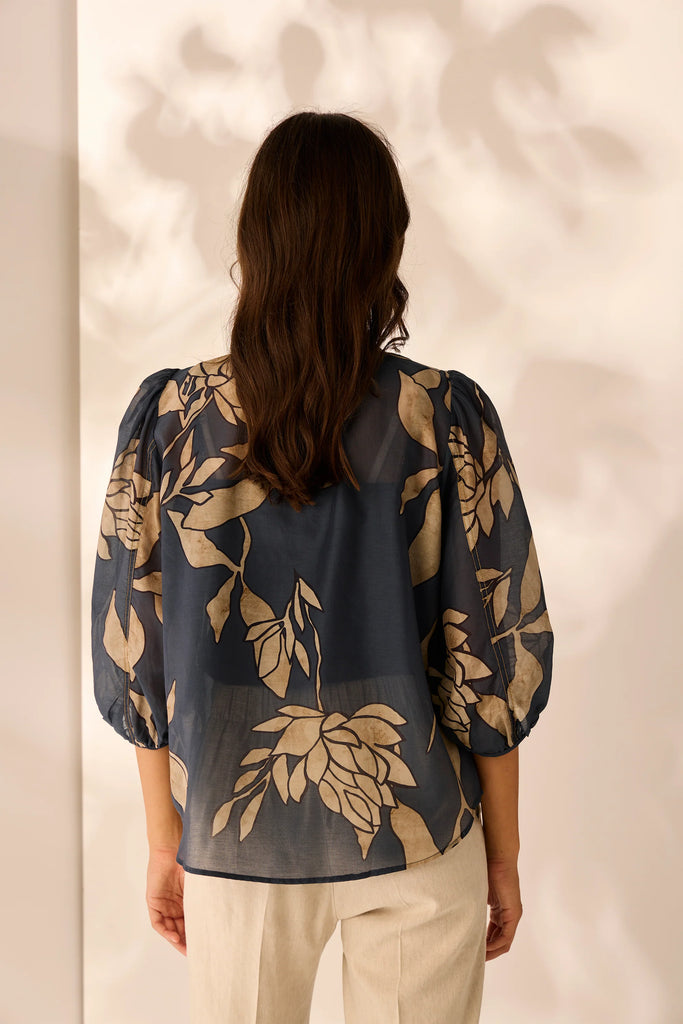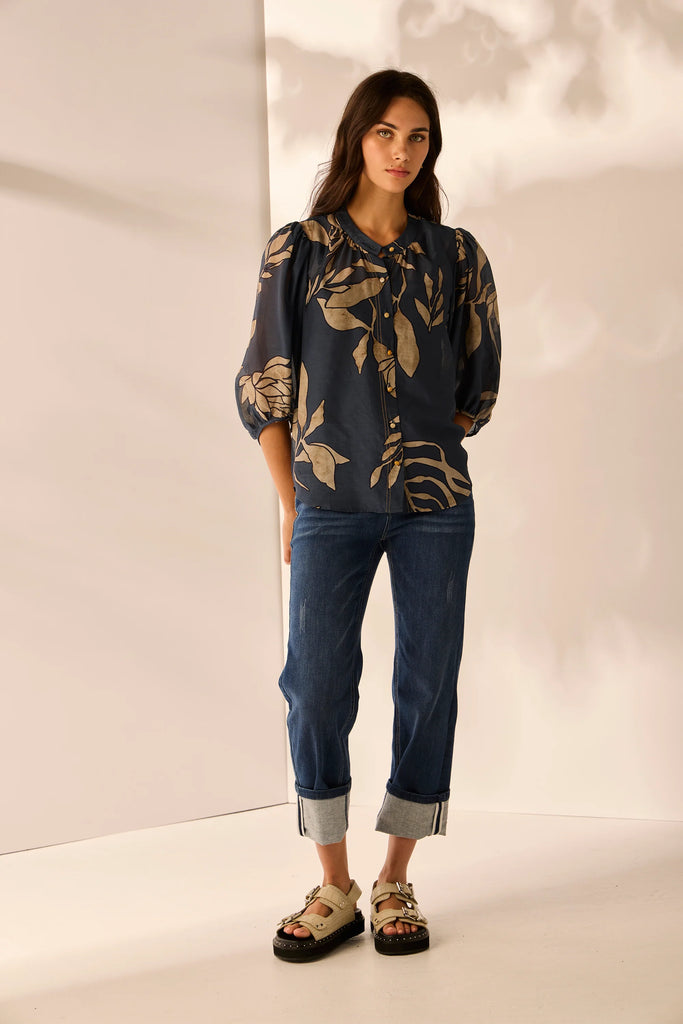 Lania The LabelEmbrace timeless elegance with the Chino Shirt, a button-through silk/cotton blend adorned with the Chino Print. Soft gathers at the neckline and 3/4 sleeves gathered into a narrow cuff create a captivation look. This shirt is a must-have for those who appreciate contemporary design with a touch of grace.