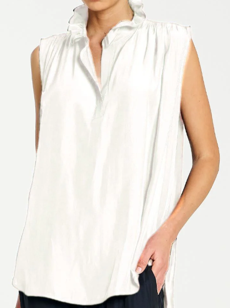Crafted from Mela Purdie's Mache, featuring a relaxed fluidity & smooth lustre surface. The Frill Neck tank is an elegant classic silhouette featuring a frill neckline detail, and gathered shoulder seams.