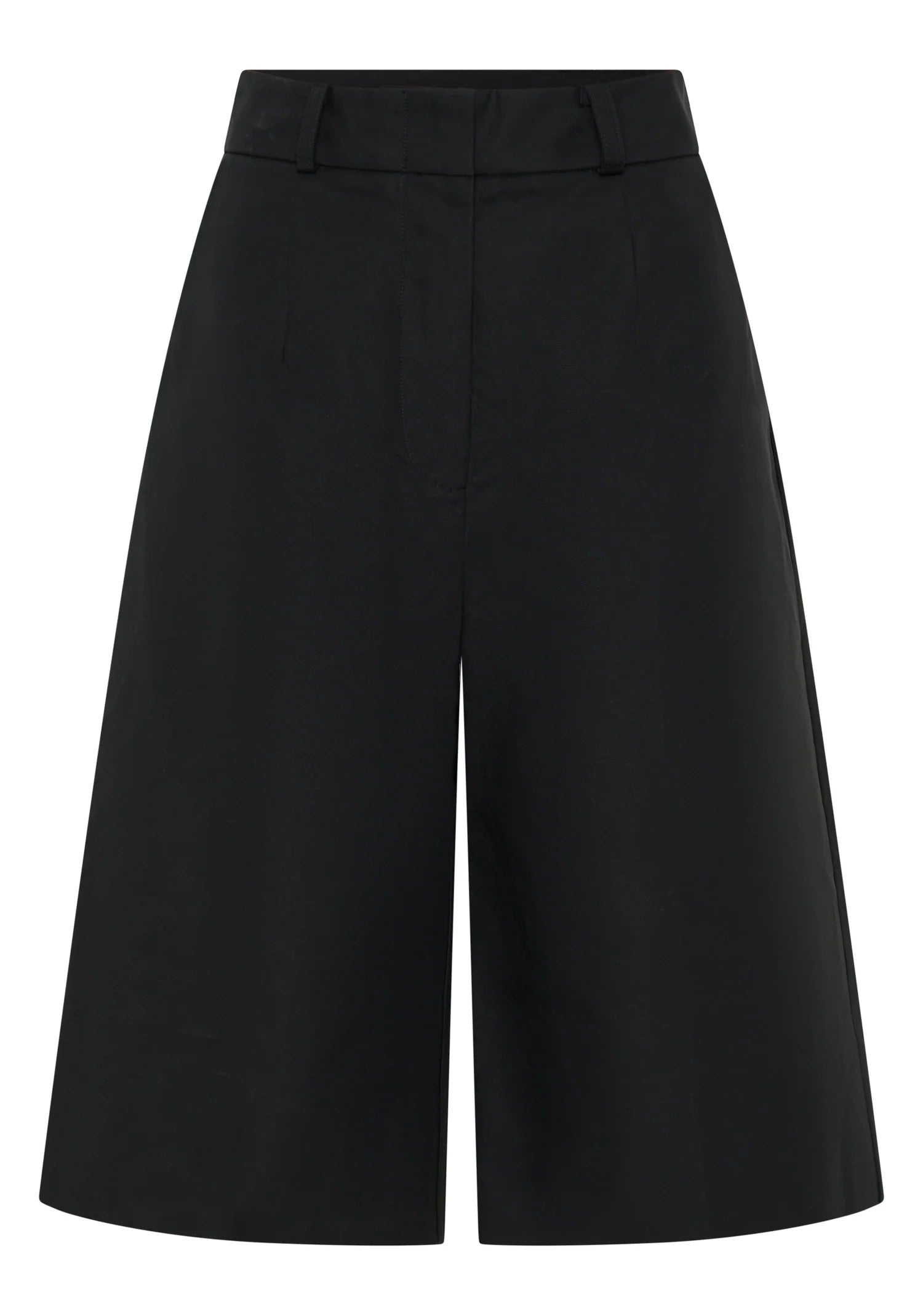The Elliott Bermuda Short, tailored in premium cotton, features a flattering high waist with a classic fly front and front slant pockets. Finished at knee length, it delivers a sleek, understated silhouette perfect for everyday wear.