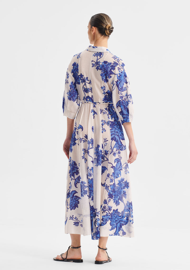 MorrisonCut from a Ramie Cotton blend, the Bonita Shirt Dress combines timeless tailoring with modern ease. Featuring a classic collar, button-down front, and voluminous 3/4 balloon sleeves, this dress drapes beautifully over the body. Pintuck details accent the front and back, creating gentle texture and movement through the swing hem.