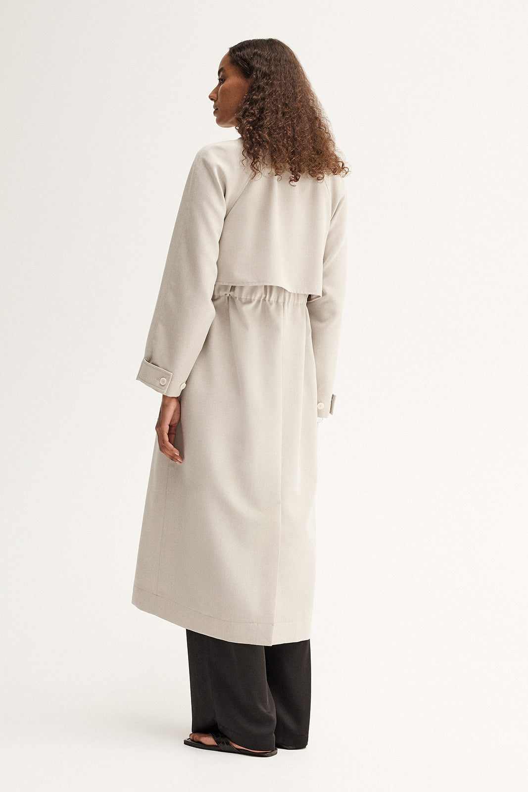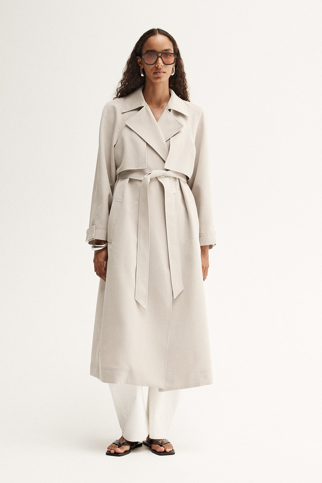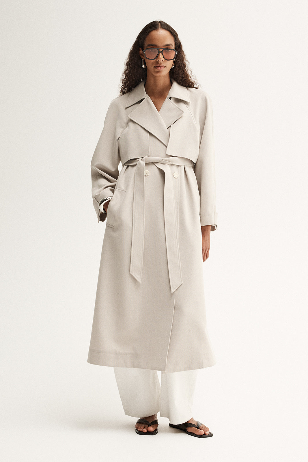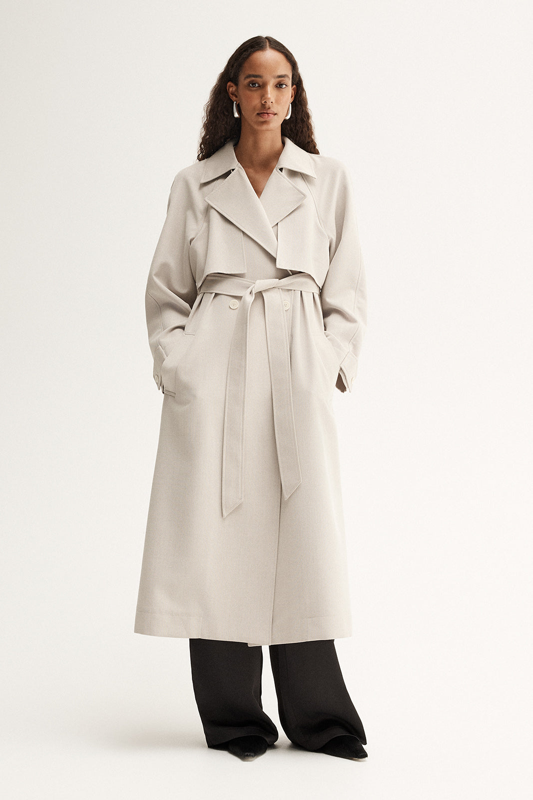 Made of a textured wool blend fabric, the Nova Trench draws influence from urban sophistication. With a double breasted cut and tie belt, this coat layers effortlessly with classic tailoring for thoughtful day to night outfitting.
