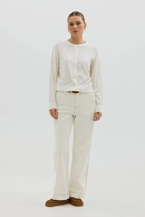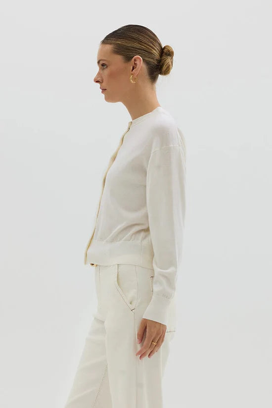 Our Classic Cardigan in deep navy is a timeless layer crafted from premium Australian Merino wool—renowned for its softness, breathability, and natural temperature regulation. Featuring a relaxed fit, crew neckline and elegant contrast buttons, this versatile piece effortlessly bridges comfort and sophistication. Wear it buttoned up for a polished look or layered open over your favourite tee, shirt or dress. Ribbed cuffs and hem add structure, while the minimalist silhouette makes it a go-to for every season.