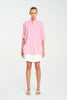 Mela PurdieCrafted from Mela Purdie's Lightweight Striped Microprene, a crisp, cotton rich fabric with high stretch and a polished finish, featuring a bold yarn dyed stripe. The Villa Overshirt offers a relaxed fit silhouette and stand collar, this is a wardrobe essential.