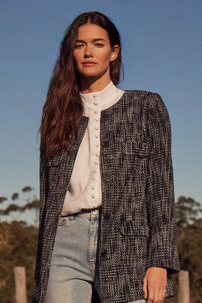 Zoe Kratzmann Portal Coat - Black/White Boucle