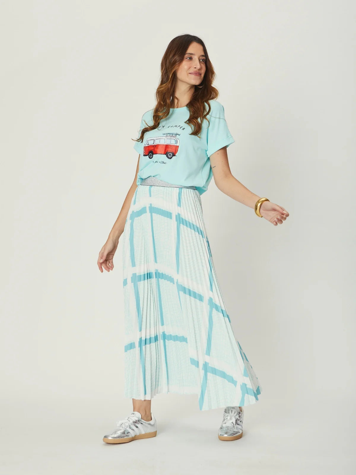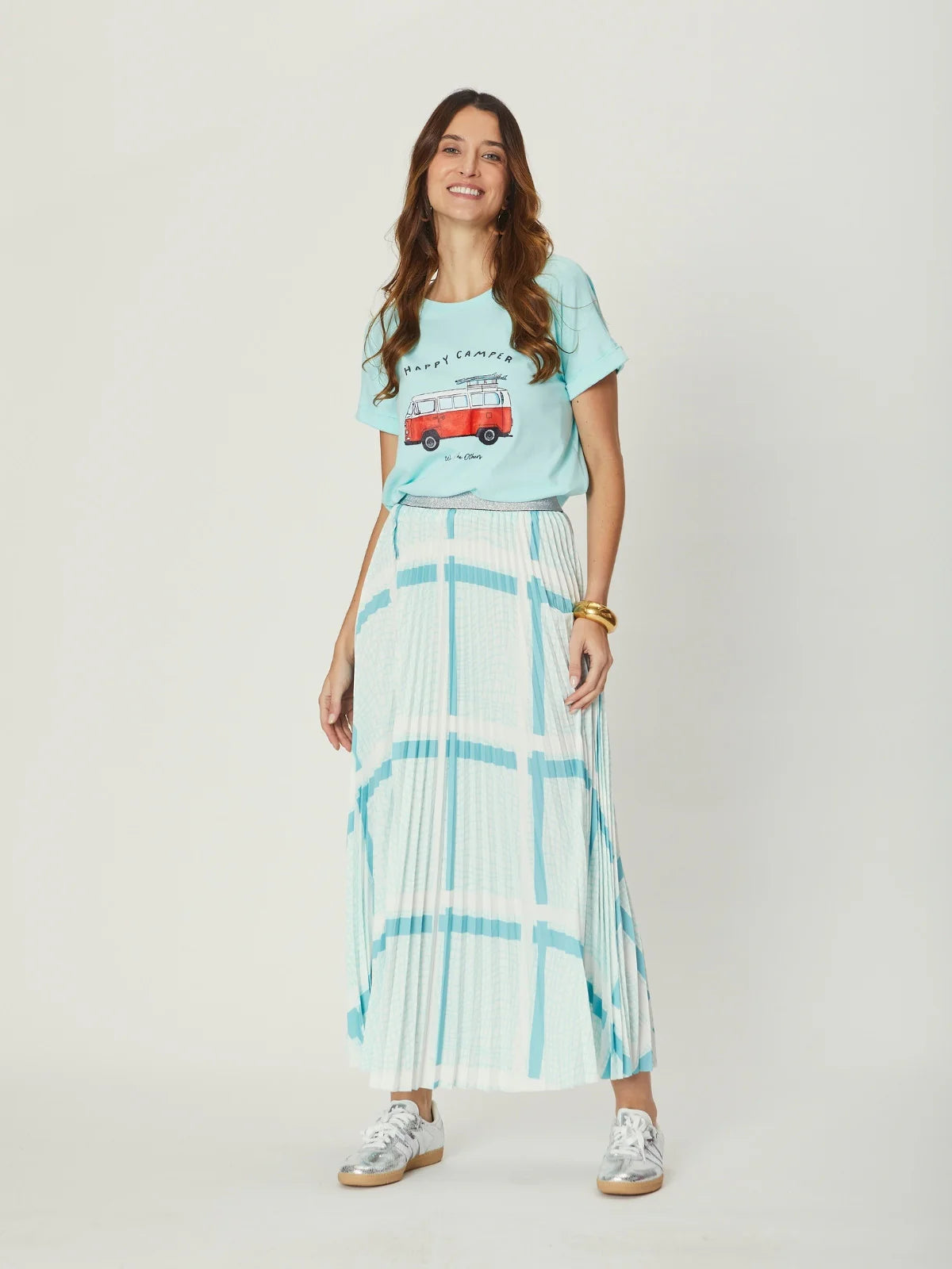 Channelling laid-back summer vibes, the Jade Relaxed Tee – Happy Camper is all about easy styling and playful details. Featuring a retro camper van print and relaxed silhouette with rolled sleeves, this tee is made for sunny days, weekend adventures and casual everyday looks.