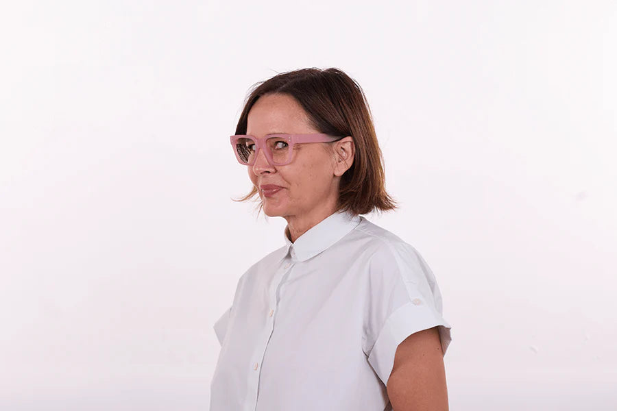 Daily EyewearBlush, an earthy soft pink with a matt finish A statement shape with bigger and bolder frames. Unisex, unique design, high-quality and comfortable with; magnifying lenses, matt feel, flexible hinges, and available in fashion forward colours.