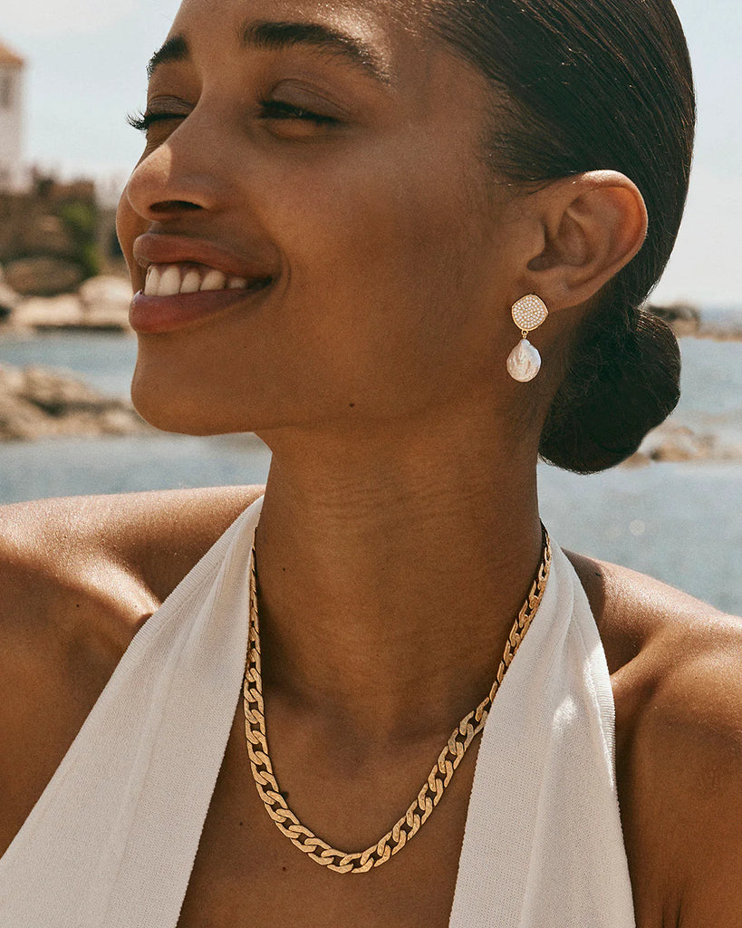 FairleyDepicting a the shimmering sunlight on water, these modern pearl earrings with their intricate design and subtle illumination, will add a sense of dazzle and adventure to any outfit. The organic shapes and radiant finish make them perfect for both day-to-night styling and special occasions. Lightweight yet impactful, they’re a standout addition to any jewellery collection.