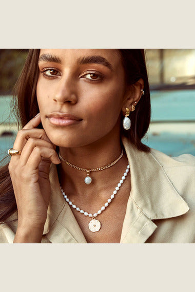 Mason & Francis is welcoming the Willow Pearl Necklace in Gold by Fairley. This ultimate day-into-night necklace features a freshwater pearl delicately hanging from a stunning polished mid-thickness curb chain. The pearl can be removed to simplify your look.