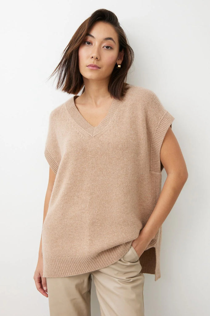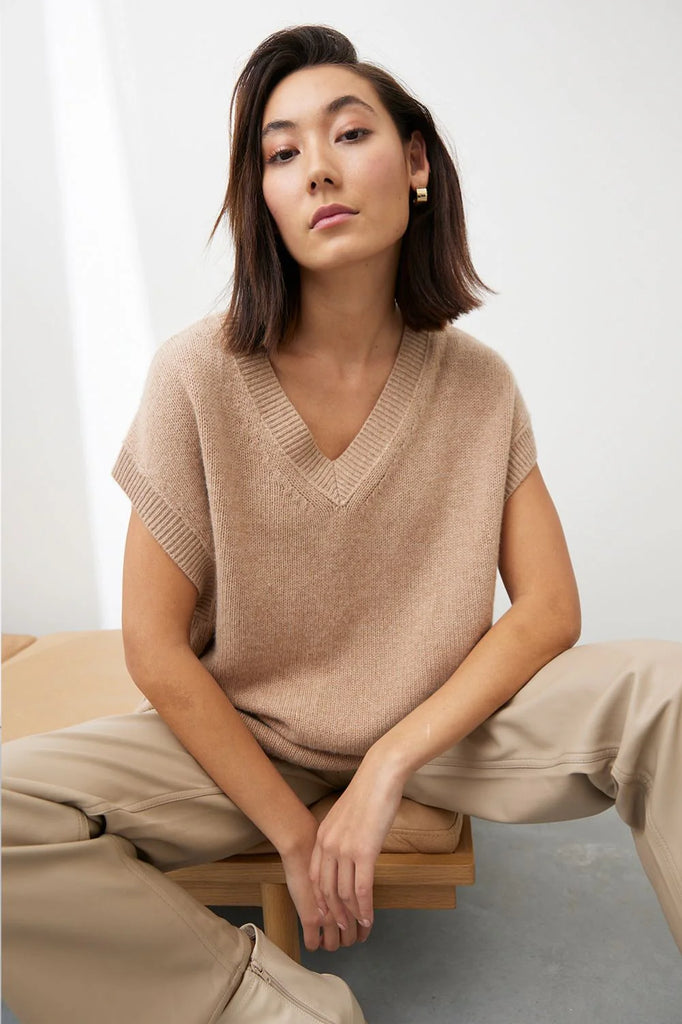 A vest is sometimes the best choice for effortless layering, and the Anya Knit Vest is no exception. Crafted from the softest 100% Mongolian cashmere, this ultra-relaxed piece drapes beautifully for a laid-back yet refined look. The split hem adds movement and versatility, making it a staple for transeasonal dressing.