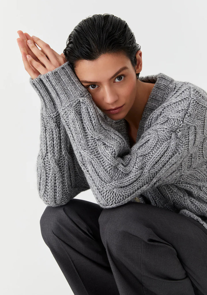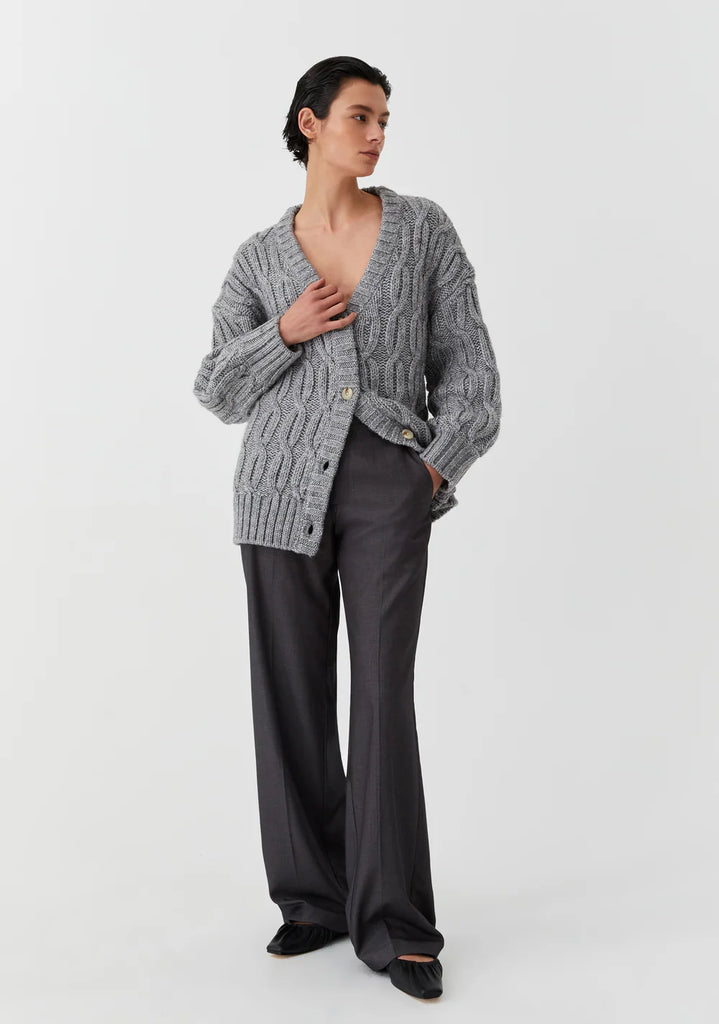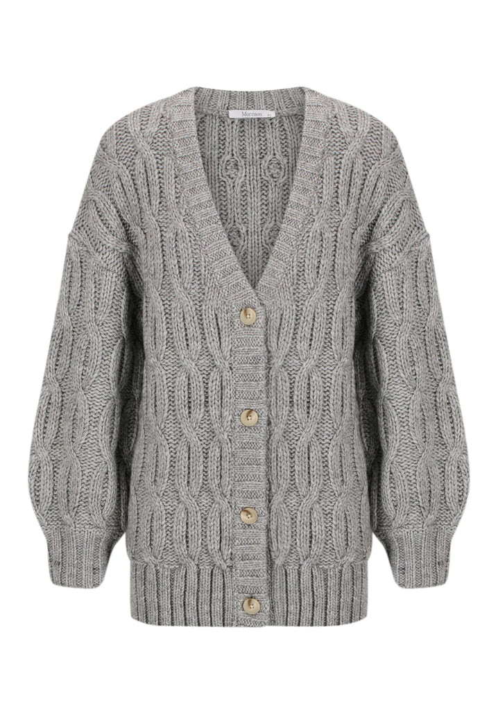 MorrisonThe Eden Knit Cardigan in Grey by Morrison is crafted from a chunky wool blend featuring recycled fibres.