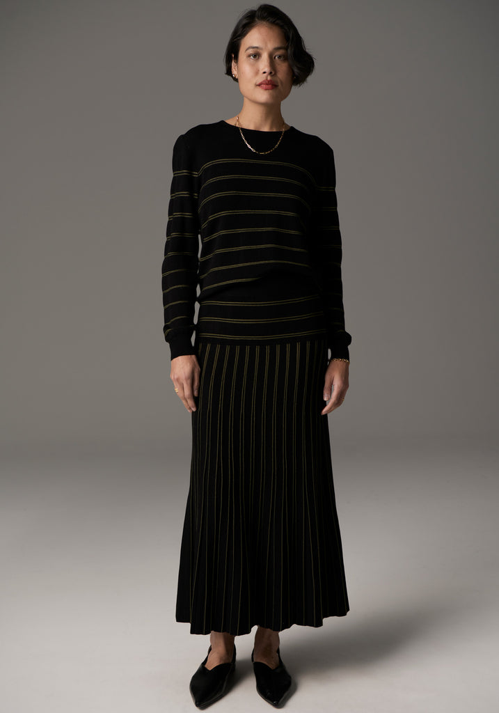 POLThe Gizelle Lurex Striped Knit takes a wardrobe classic and adds a fun yet elevated twist - with tiny bright lurex double stripes bringing texture and a little sparkle. Available this year in three new colours.