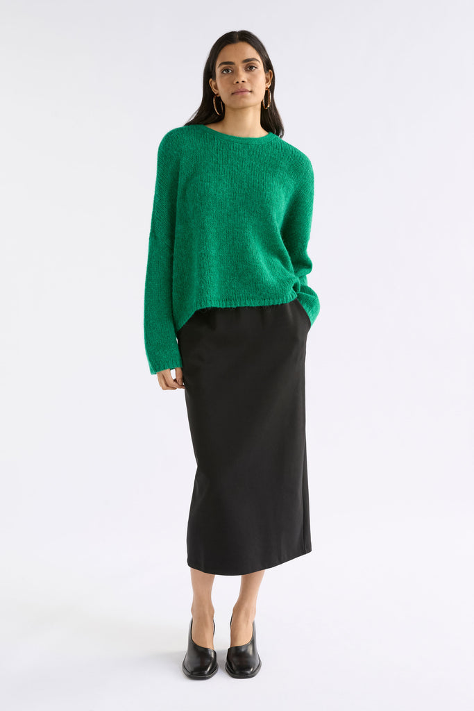 The Agna Sweater is a classic, best selling ELK style and a firm favourite of our team and customers. Appreciated for its laid back aesthetic and year-round wearability, this relaxed-oversized, boxy fit sweater features an exaggerated dropped shoulder and a fluted wide sleeve. Draping casually across the body, this sweater is crafted from a soft, comfortable alpaca-wool blend yarn.