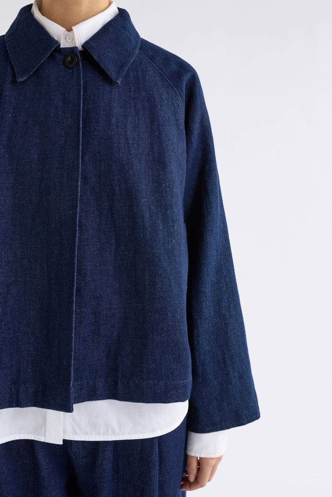 ELKThe Decla Denim Jacket reimagines the classic denim jacket with a utilitarian, worker jacket appeal and a fresh, modern twist. Crafted from a mid-heavy weight organic cotton and French linen blend with beautiful structure. This regular fit jacket has a subtle A-line shape, classic collar and concealed button placket. Full-length raglan sleeves have dividing seams that add modern edge. Pair with the Decla Jean for a full matching ensemble or wear over you favourite day dresses or with our Kudel Pant