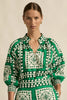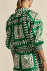 Sustainably printed our exclusive parrot scarf print, a spirited exploration of hue and european-inspired graphic motif. pair with denim for effortless styling.