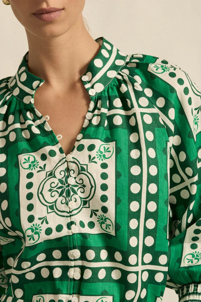 Zoe KratzmannSustainably printed our exclusive parrot scarf print, a spirited exploration of hue and european-inspired graphic motif. pair with denim for effortless styling.