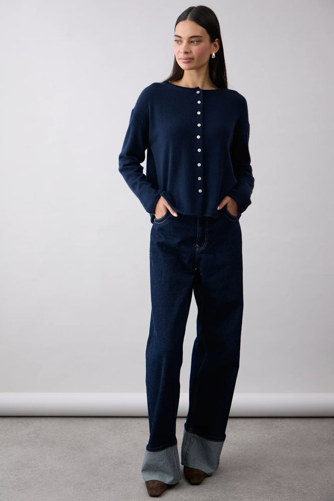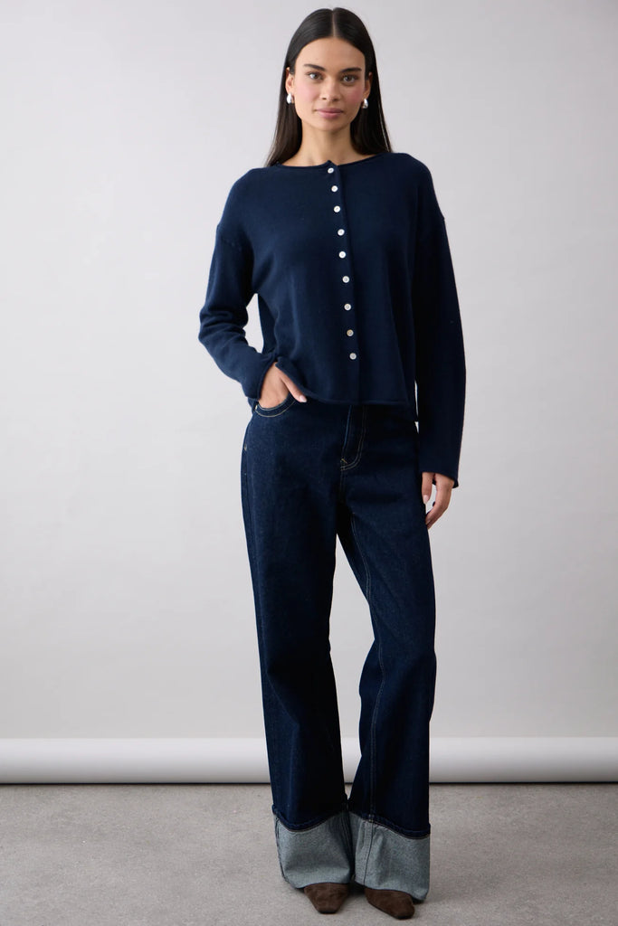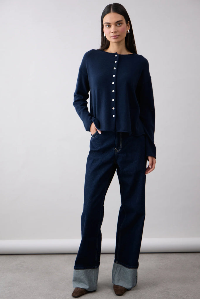 Mia FratinoThe Reversible Button Cardi in French Navy by Mia Fratino is the perfect versatile, throw-on piece.