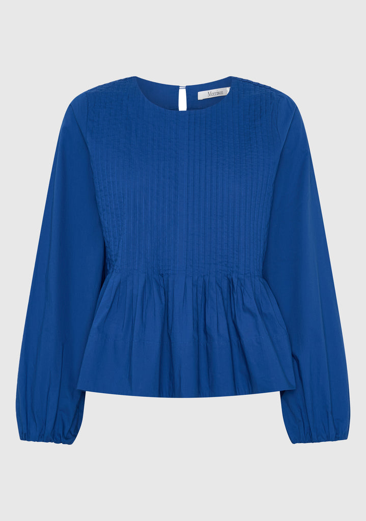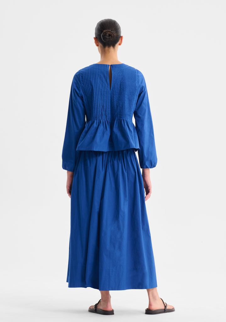 MorrisonCrafted from mid-weight cotton poplin, the Arabella Top features a round neckline with a keyhole and button closure at the back. Pintuck detailing throughout the bodice adds subtle texture, while the full-length sleeves with elasticised cuffs and flared hem create a beautiful silhouette.