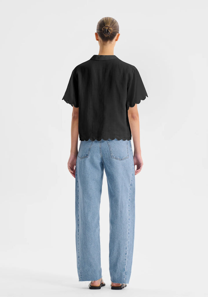 MorrisonCrafted from a ramie blend, the Constance Shirt features a traditional collar, concealed button placket, and short sleeves. Designed with a boxy silhouette, scalloped edges, and double layered self fabric for a modern, elevated finish.