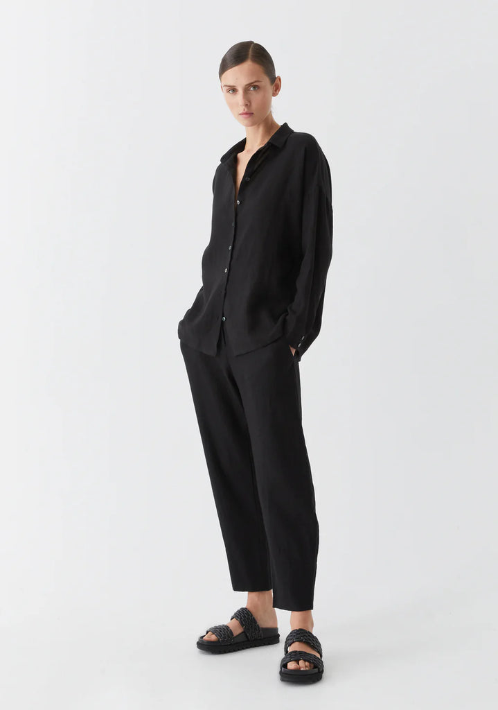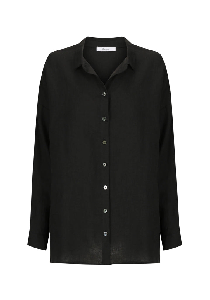 MorrisonThe Jaxon Linen Shirt in Black by Morrison is a timeless wardrobe essential, crafted from premium lightweight linen for effortless comfort and breathability.