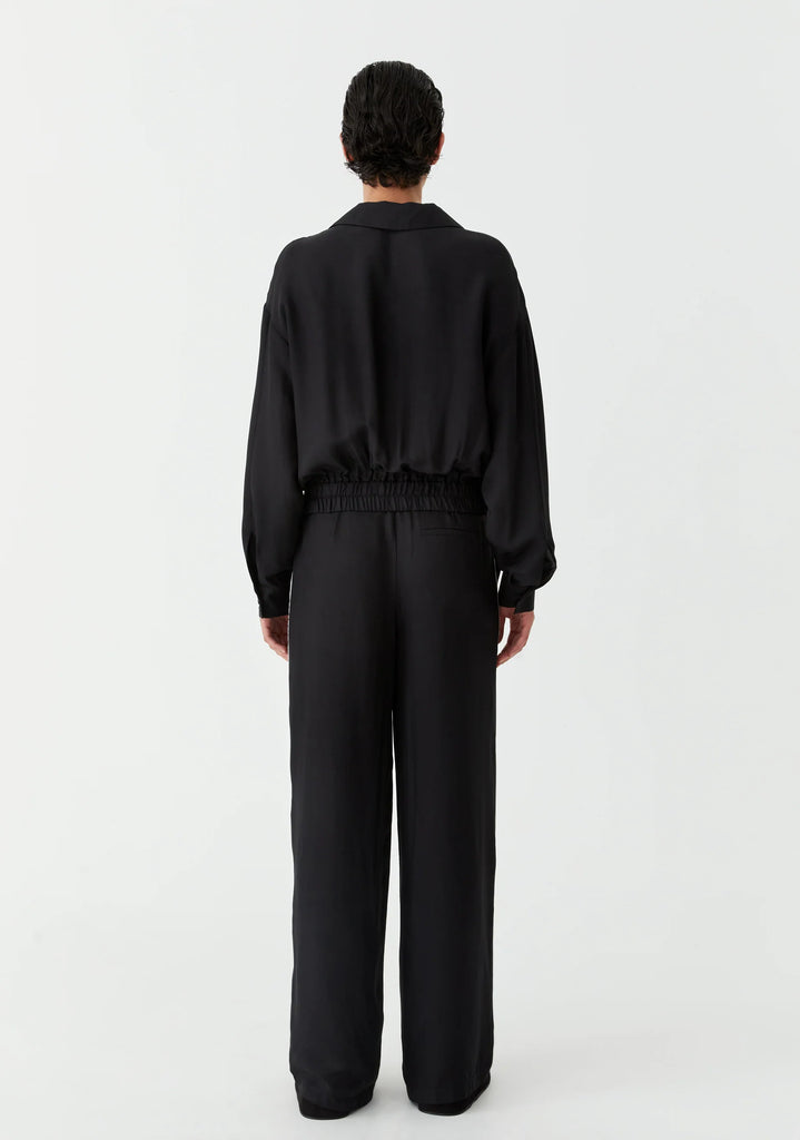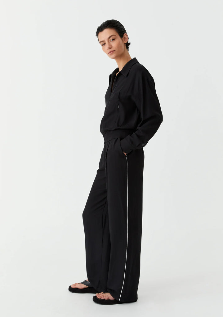 The Pedro Stripe Pant in Black is crafted from premium viscose twill and designed for everyday ease.