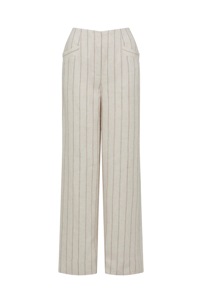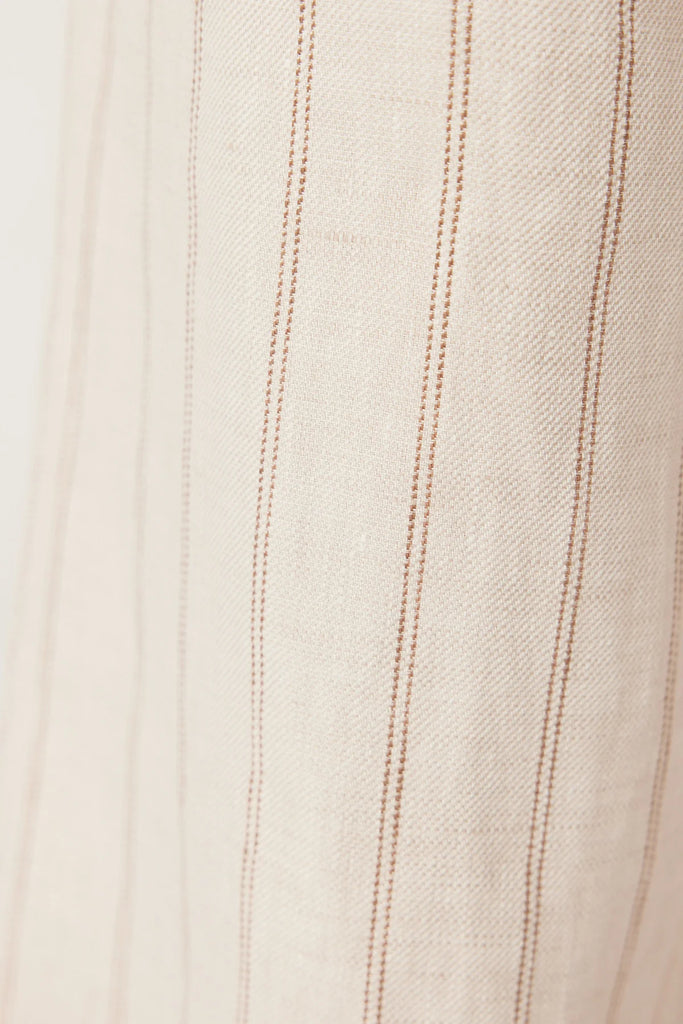CableThe Savannah Linen Pant is a regular fit style in pure linen twill with a pinstripe design. Featuring a flat front and wide leg silhouette, it includes a zip fly with hook and bar closure, front pockets and back welt pockets. A versatile tailored pant that brings ease to summer outfitting.